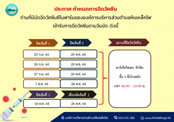 ประกาศ เรื่อง กำหนดการฉีดวัคซีน