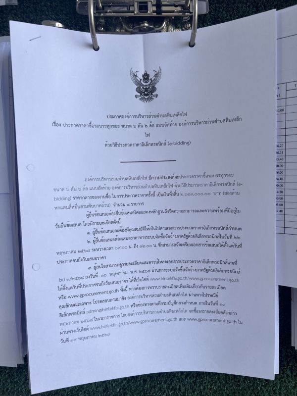 ประกาศ ประกวดราคาซื้อรถบรรทุกขยะ ขนาด 6 ตัน 6 ล้อ แบบอัดท้าย