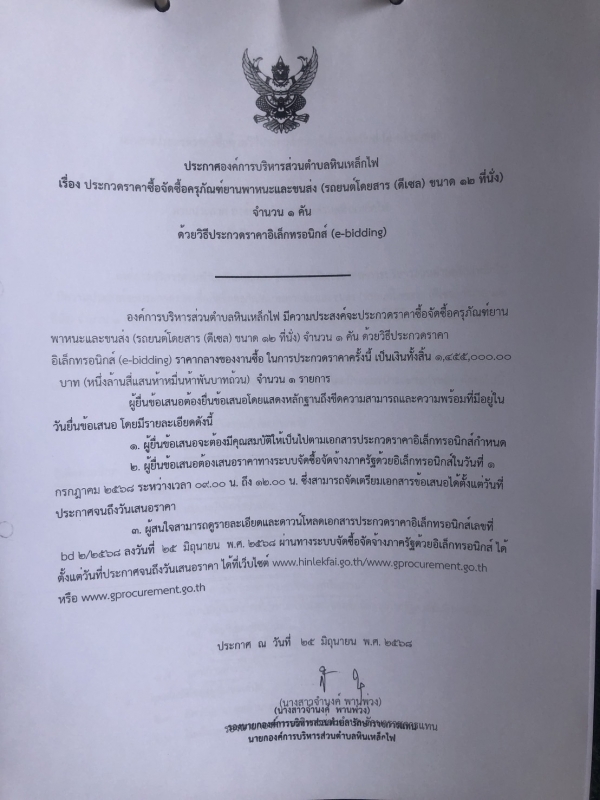 ประกาศประกวดราคาจัดซื้อครุภัณฑ์ยานพาหนะและขนส่ง รถยนต์โดยสาร (ดีเซล) จำนวน 12 ที่นั่ง จำนวน 1 คัน