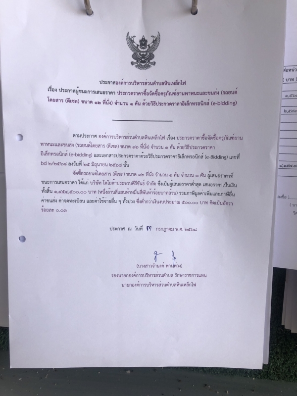 ประกาศผู้ชนะการเสนอราคา จัดซื้อครุภัณฑ์ยานพาหนะและขนส่ง รถยนต์โดยสาร (ดีเซล) จำนวน 12 ที่นั่ง จำนวน 1 คัน