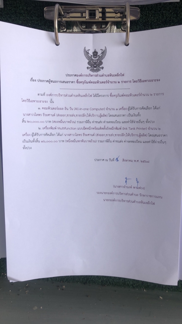 ประกาศผลผู้ชนะการเสนอราคาจัดซื้อครุภัณฑ์คอมฯ กองสวัสดิการสังคม