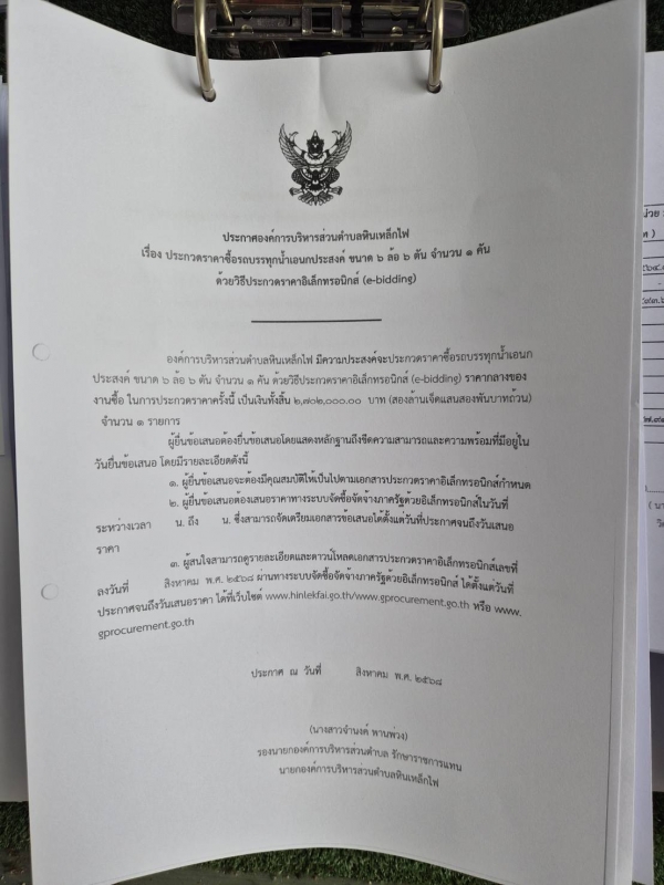 ประกาศ ประกวดราคาซื้อรถบรรทุกน้ำเอนกประสงค์ ขนาด 6 ล้อ 6 ตัน ด้วยวิธีประกวดราคาอิเล็กทรอนิกส์ (e-bid