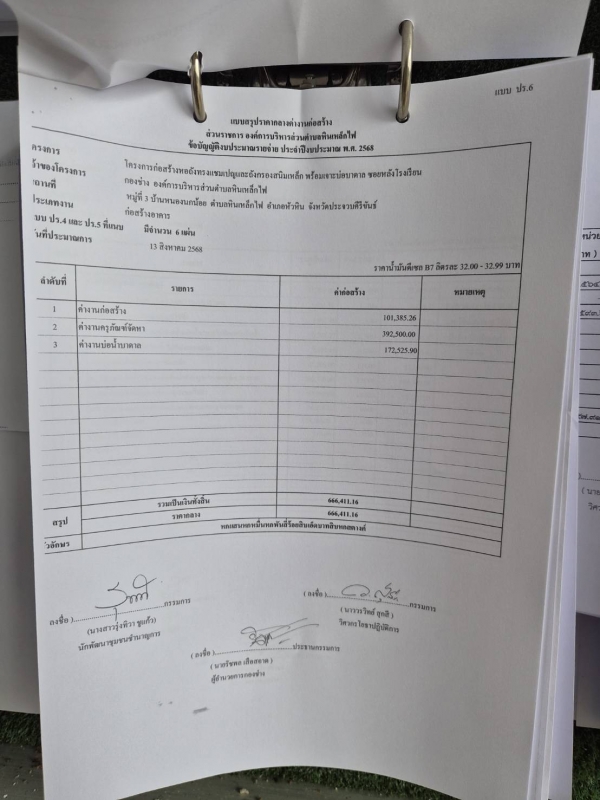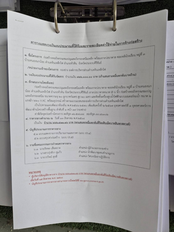 ประกาศราคากลางจ้างก่อสร้างหอถังทรงแชมเปญและถังกรองสนิมเหล็ก พร้อมเจาะบ่อบาดาล ซอยหลังโรงเรียน หมู่ที