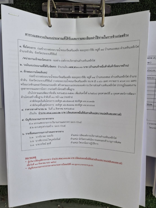 ประกวดราคากลางจ้างก่อสร้างวางท่อระบายน้ำคอนกรีตเสริมเหล็ก ซอยยุทธวารีชัย หมู่ที่ 14 บ้านหนองสมอ