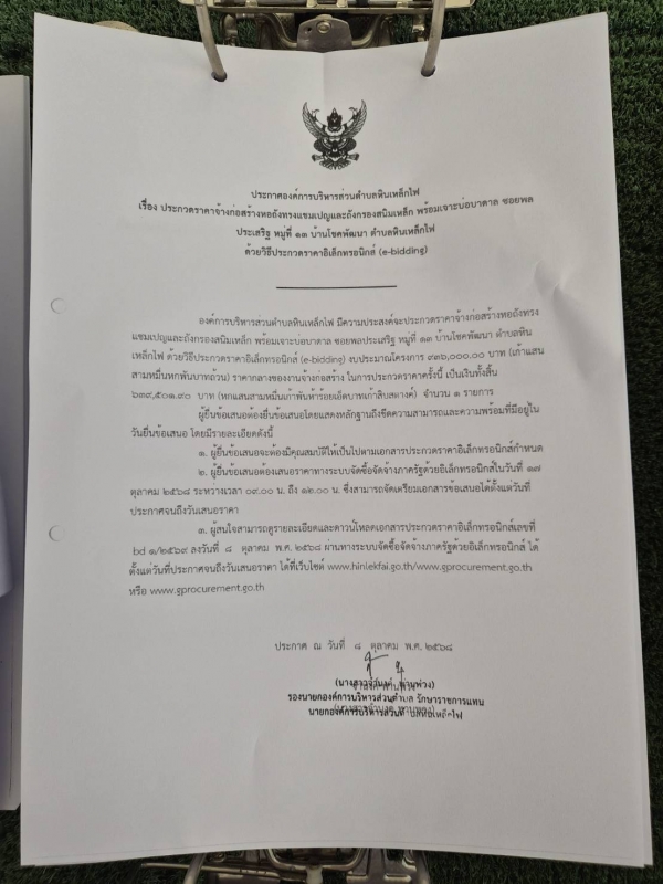 ประการ ประกวดราคาจ้าง โครงการก่อสร้างหอถังทรงแชมเปญและถังกรองสนิมเหล็ก พร้อมเจาะบ่อบาดาล ซอยพลประเสริฐ หมู่ที่ 13 บ้านโชคพัฒนา