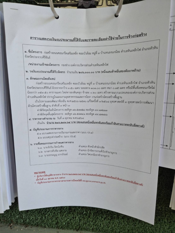 ประกาศ ราคากลางก่อสร้างถนนคอนกรีตเสริมเหล็ก ซอยบัวล้อม หมู่ที่ 3 บ้านหนองนกน้อย