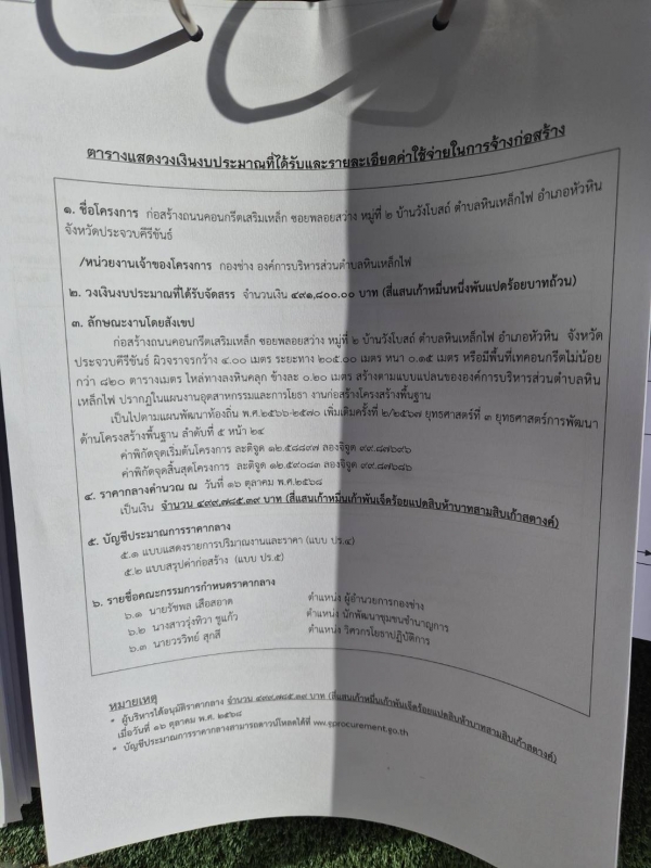 ประกาศ ราคากลางก่อสร้างถนนคอนกรีตเสริมเหล็ก ซอยพลอยสว่าง หมู่ที่ 2 บ้านวังโบสถ์