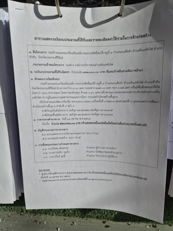 ประกาศ ราคากลางก่อสร้างถนนคอนกรีตเสริมเหล็ก ซอยประสิทธิ์สมบัติ หมู่ที่ 8 บ้านหนองเสือดำ