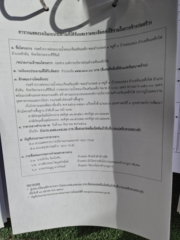 ประกาศ ราคากลางก่อสร้างวางท่อระบายน้ำคอนกรีตเสริมเหล็ก ซอยอำนวยผล 1 หมู่ที่ 9 บ้านขอนทอง