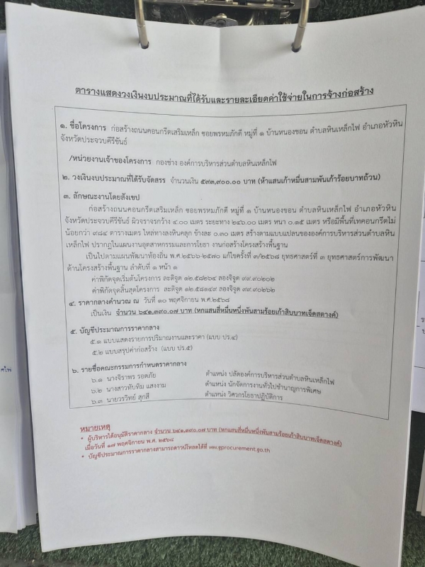ประกาศ ราคากลางจ้างก่อสร้างถนนคอนกรีตเสริมเหล็ก ซอยพรหมภักดี หมู่ที่ 1 บ้านหนองขอน