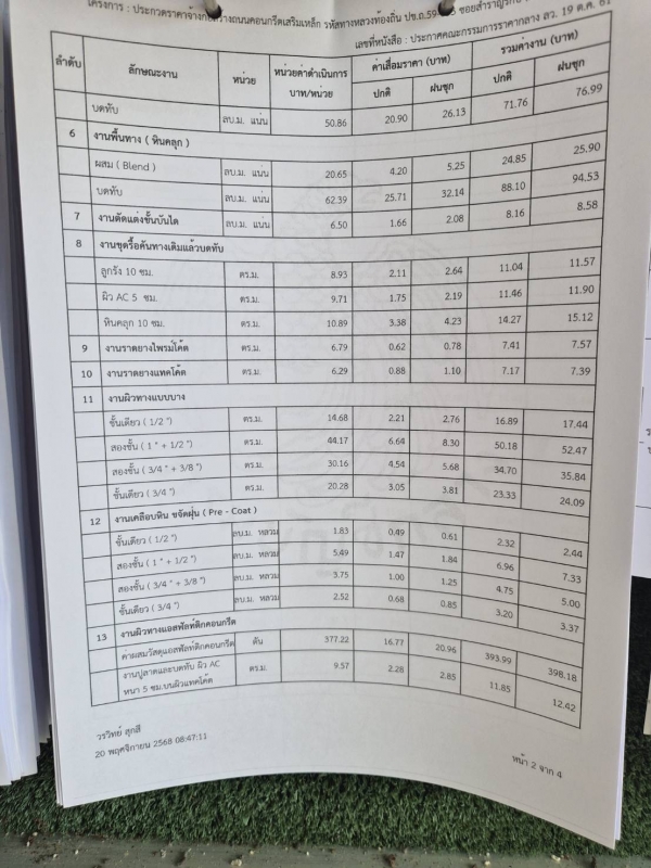 ประกาศ ราคากลางจ้างก่อสร้างถนนคอนกรีตเสริมเหล็ก รหัสทางหลวงท้องถิ่น ปข.ถ.59-033 ซอยสำราญรักษ์ (ต่อจา