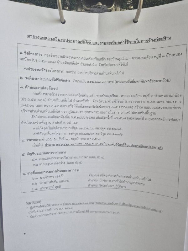 ประกาศ ราคากลางจ้างก่อสร้างขยายผิวจราจรถนนคอนกรีตเสริมเหล็ก ซอยบ้านลุงเจียม - ศาลแม่ตะเคียน หมู่ที่ 3 บ้านหนองนกน้อย (ปข.ถ.59-001) ตำบลหินเหล็กไฟ อำเภอหัวหิน จังหวัดประจวบคีรีขันธ์