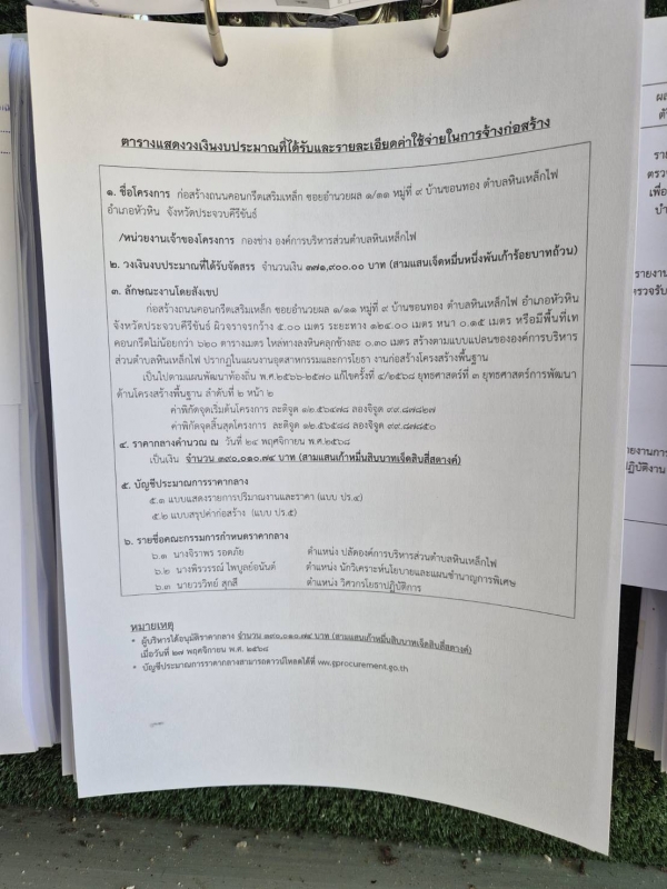 ประกาศ ราคากลางจ้างก่อสร้างถนนคอนกรีตเสริมเหล็ก ซอยอำนวยผล 1/11 หมู่ที่ 9 บ้านขอนทอง