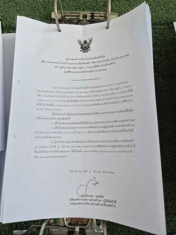 ประกาศ ประกวดราคาจ้างก่อสร้างถนนคอนกรีตเสริมเหล็ก รหัสทางหลวงท้องถิ่น ปข.ถ.59-033 ซอยสำราญรักษ์ (ต่อจากเดิม) หมู่ที่ 8 บ้านหนองเสือดำ