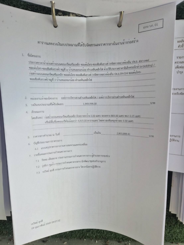 ประกาศ ราคากลางจ้างก่อสร้างถนนคอนกรีตเสริมเหล็ก ซอยต้นไทร-ซอยสัมพันธวงศ์ หมู่ที่ 3 บ้านหนองนกน้อย