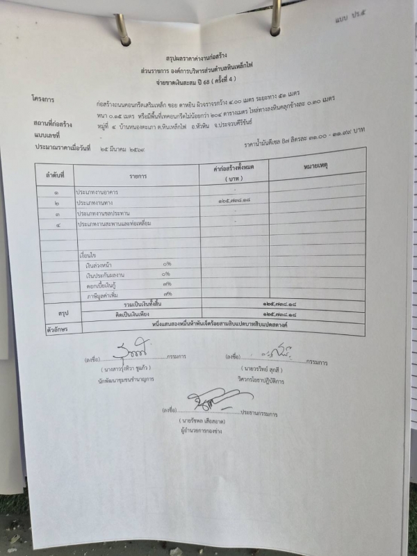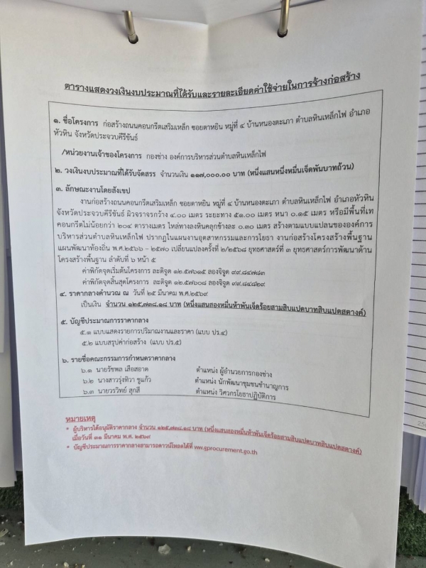 ประกาศ ราคากลางจ้างก่อสร้างถนนคอนกรีตเสริมเหล็ก ซ.ตาหยิน ม.4 บ้านหนองตะเภา