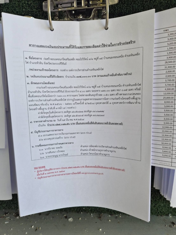 ประกาศ ราคากลางจ้างก่อสร้างถนนคอนกรีตเสริมเหล็ก ซ.ไร่วิรัตน์ 3/1 ม.15