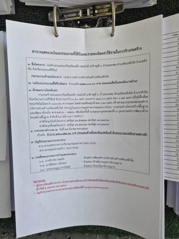 ประกาศ ราคากลาจ้างก่อสร้างถนนคอนกรีตเสริมเหล็ก ซอยไปดี มาดี หมู่ที่ 6